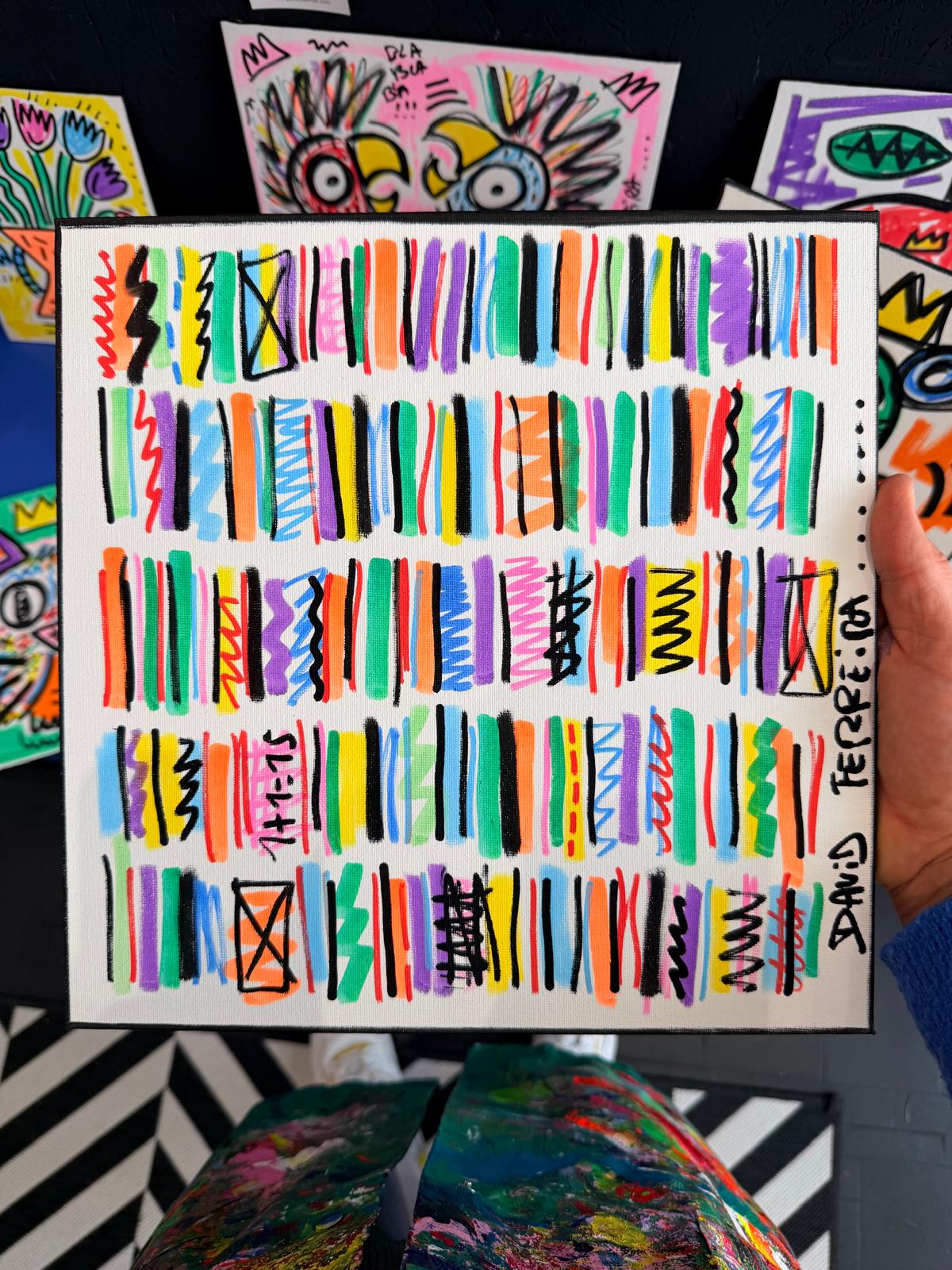 Les gribouilles toto sont des dessins réalisés au Posca sur carton entoilé.
